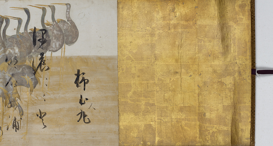 本阿弥光悦の書蹟の代表作ということでも従来から著名な1巻。装飾芸術家としての俵屋宗達(活躍期、1602-1635)の真骨頂がみごとに発揮された作品である。描かれているモティーフはただ鶴のみに限られる。長大な巻物の冒頭から繰り広げられる鶴の群れは、一様に金と銀の泥で表現される。あるいは飛翔し、あるいは羽を休めて寄りつどう鶴の姿態は、単純そのものの筆使いで捉えられていながら、そのシルエットの美しさは比類がない。料紙装飾という限定された課題のなかで、ぎりぎりまで個性を表出し得た宗達の手腕を見てとることができよう。