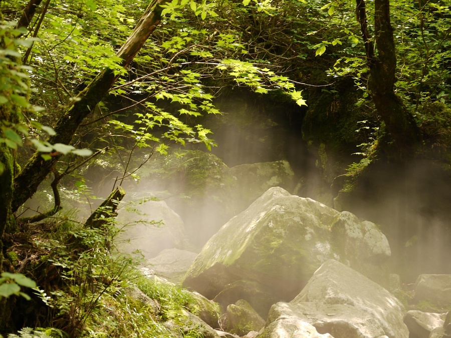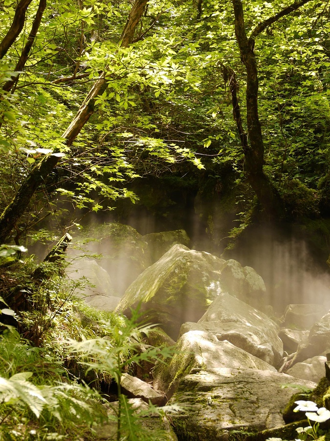 皿ヶ峰斜面地に堆積した巨礫の隙間から夏季の冷気噴出で独特な風致景観をなす名勝地