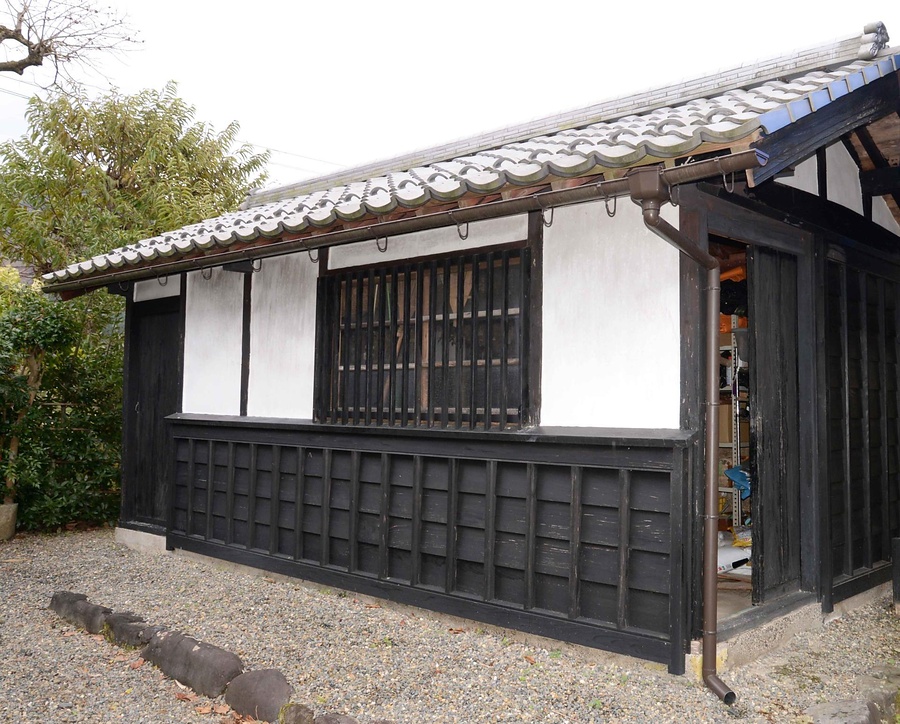 主屋の南西に位置する物置。平屋建切妻造の東西棟で屋根桟瓦葺とし、外壁は上部を荒壁仕上で鉄板を張り、腰は下見板張とする。内部は東西二室の土間で上部に小屋組を現し、西妻と北面東寄りに戸口を開け板戸を建てる。正門と並び屋敷の表構えをつくる物置。