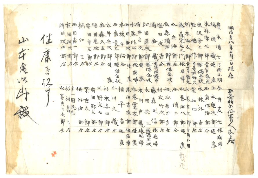 山本亀次郎(1873~?)は日清・日露戦争に従軍し、のち在郷軍人となったので、『軍隊手帳』、各種勲章、従軍保険関係、恩給関係、「簡閲点呼」関係資料などがある。また、赤十字関係、土地建物関係資料などもある。