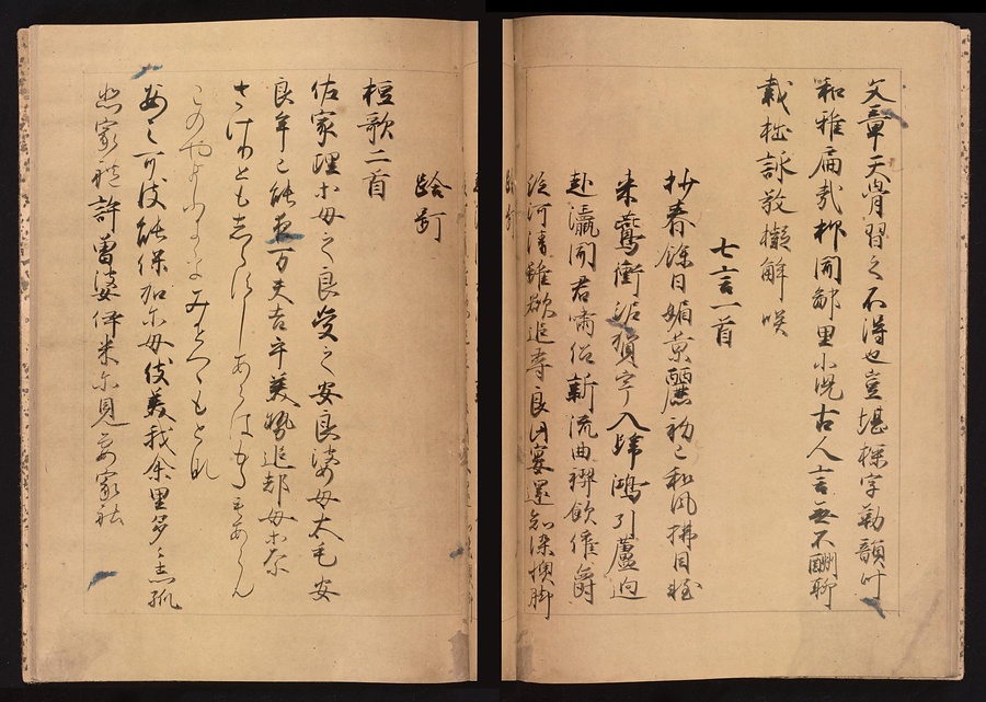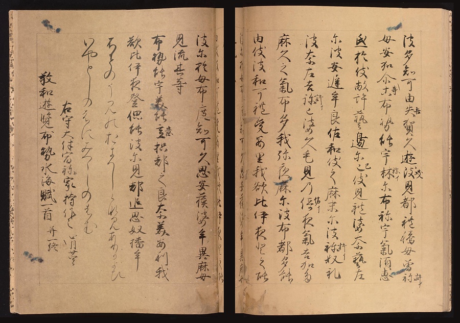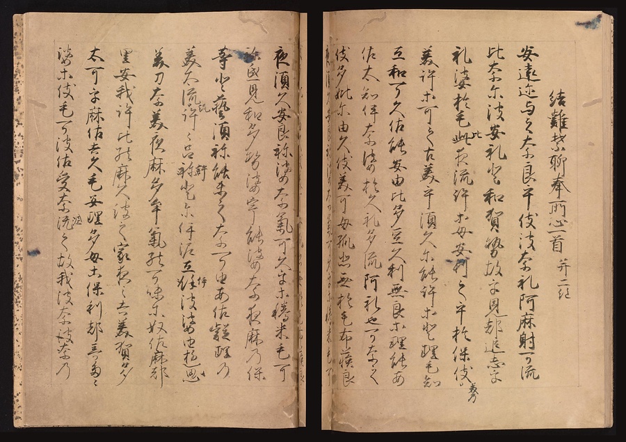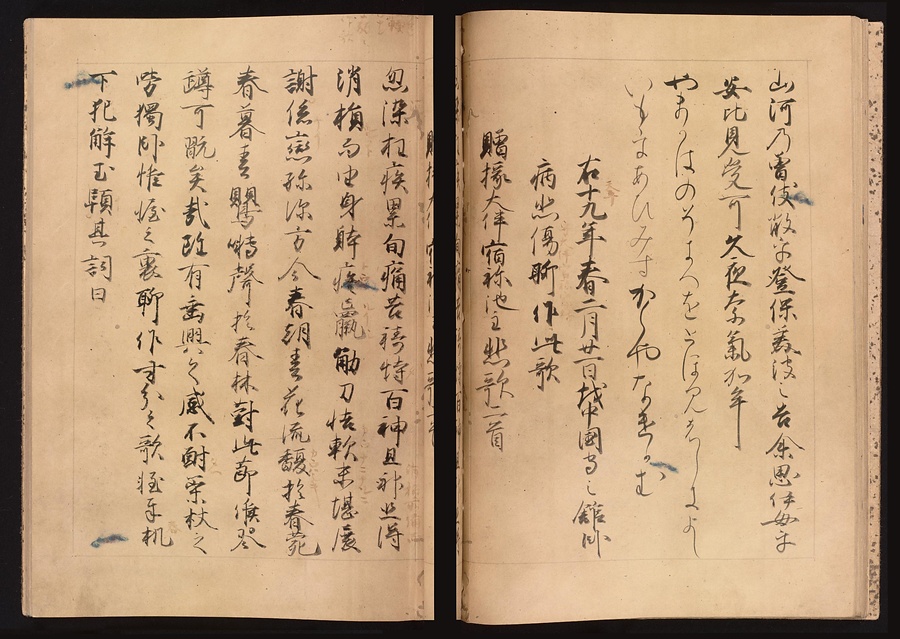 『万葉集』とは古代の和歌をあつめた日本最古の歌集であり、8世紀の後半頃にまとめられました。現在のこされている『万葉集』はいずれも平安時代以降に書き写されたもので、この元暦校本万葉集は元暦元年(1184)に校正作業が行われた写本です。