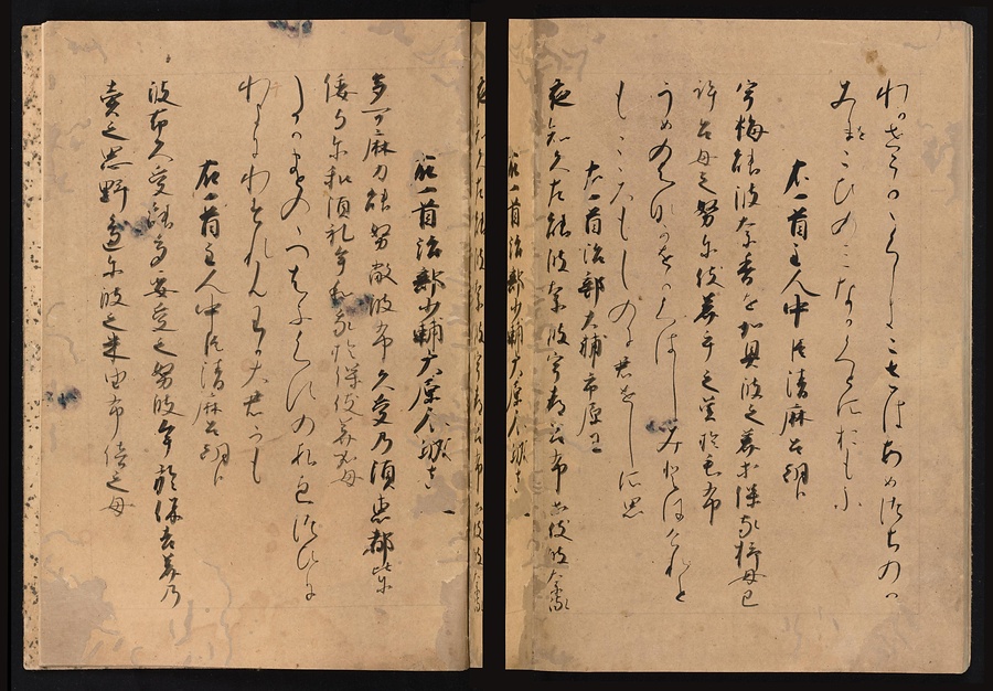 その書風は中国の影響から離れ、穏やかで伸びやかな和風の美しさをみせており、特に仮名にはここちよいリズムが感じられます。歌・紙・文字がそれぞれ響きあい、かたち作られた平安の美の世界をご堪能ください。