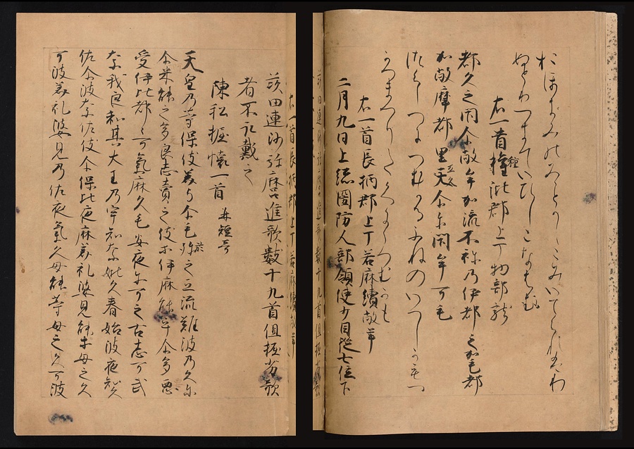 『万葉集』とは古代の和歌をあつめた日本最古の歌集であり、8世紀の後半頃にまとめられました。現在のこされている『万葉集』はいずれも平安時代以降に書き写されたもので、この元暦校本万葉集は元暦元年(1184)に校正作業が行われた写本です。
