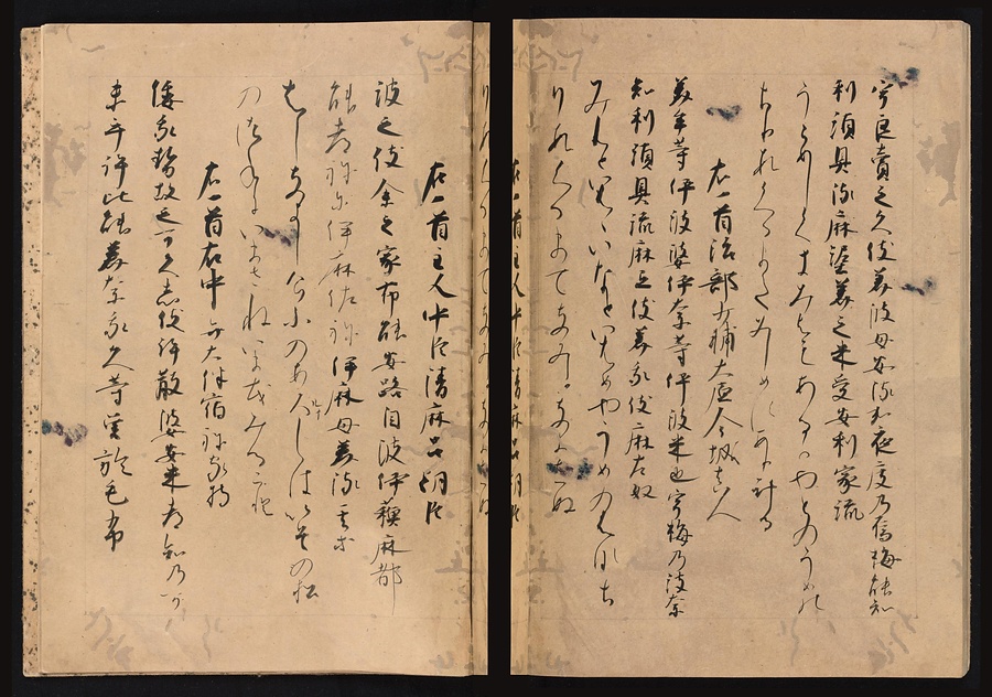 また紙自体も美しいもので、飛雲という紫と藍で染めた紙の繊維をすき込んだ鳥の子紙を用いています。