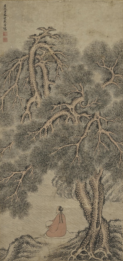 松下聴泉図軸