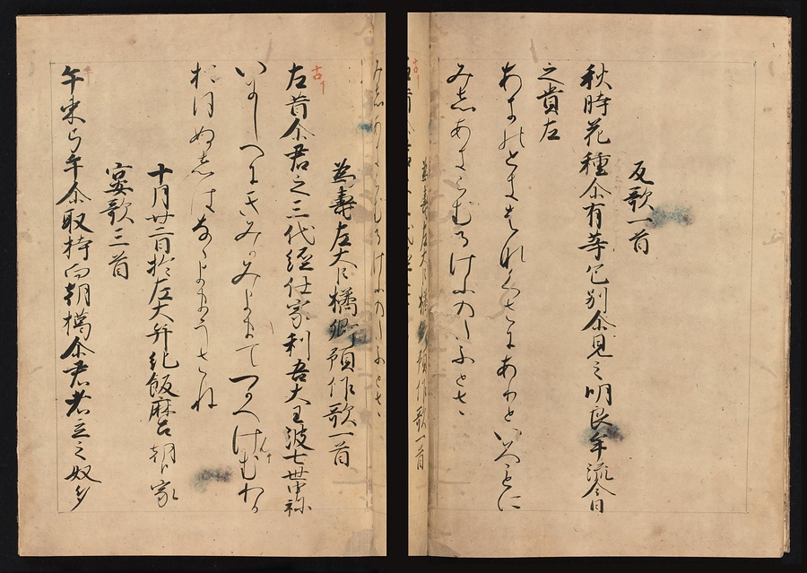 『万葉集』とは古代の和歌をあつめた日本最古の歌集であり、8世紀の後半頃にまとめられました。現在のこされている『万葉集』はいずれも平安時代以降に書き写されたもので、この元暦校本万葉集は元暦元年(1184)に校正作業が行われた写本です。