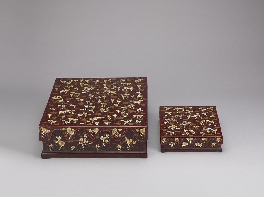 葡萄栗鼠螺鈿箔絵料紙硯箱