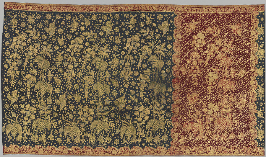 赤緑染分花鳥文様金更紗腰衣