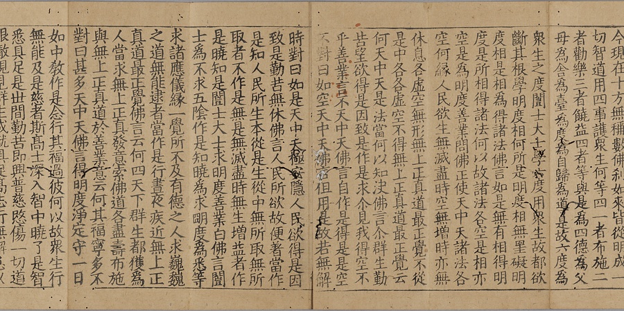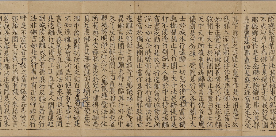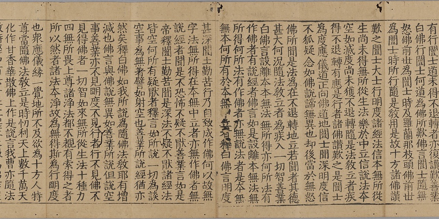 日宋貿易の代表的な輸入品である宋版大蔵経(一切経)のうちの一帖。宋時代にはいくつかの印刷大蔵経(木版)が作られたが、本経は北宋末、12世紀半ばに開版された「思渓版」と呼ばれる大蔵経の一部である。巻末に記された奥書から、笠間郷(茨城県笠間市)を本拠とした鎌倉幕府御家人の笠間時朝が、建長7年(1255)に常陸国一之宮の鹿島神宮に納めた大蔵経の零巻であることが知られる。同経典群は「笠間経」とも称され、江戸末期には既に散逸していたが、寺院や故実家、収集家等の手を経た数帖が伝世する。思渓版大蔵経は比較的多く日本へ舶載され、現存するものの、本経のように渡来時期や奉納者、施入先が明らかなものは珍しく、中世前期の渡来経典として甚だ希少である。