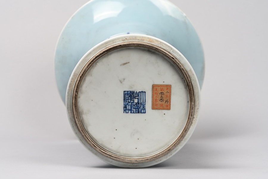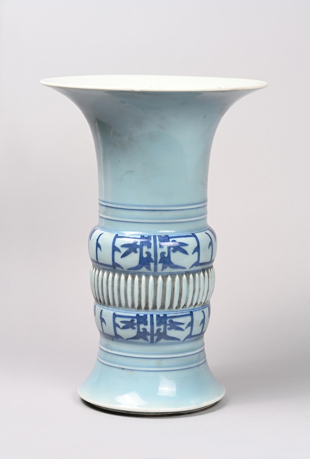 淡藍釉青花夔紋尊