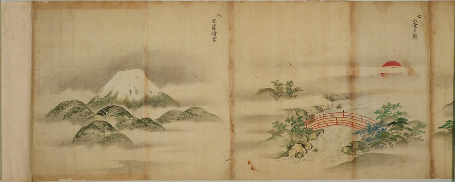 紙本墨画淡彩四季山水図〈/六曲屏風〉