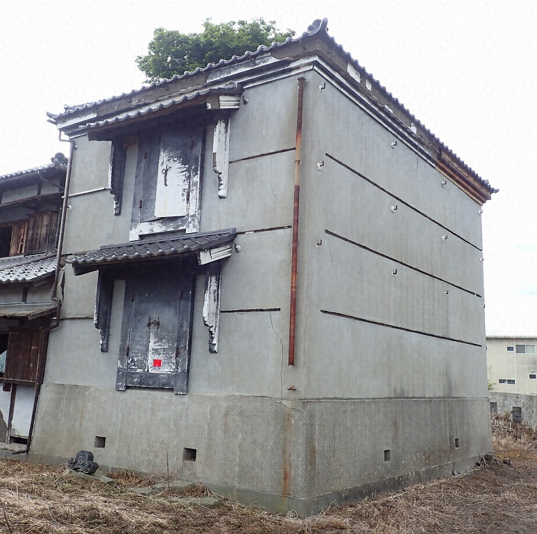 医家の奥座敷西に接続する家財蔵。二階建寄棟造桟瓦葺、東面の戸前は板敷で竿縁天井を張る。外壁は土蔵造モルタル塗仕上で水切三段を付し、腰を人造石研ぎ出しとする。内部は各階一室の板敷で小屋組キングポスト・トラス。屋敷の西方を構成する重厚な土蔵。