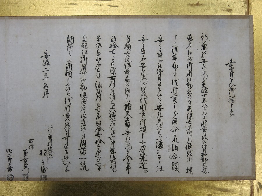 越中砺波郡行兼村(現富山県高岡市戸出行兼)の肝煎(村長)任命願い書。当時の農村の実態の一端を示す史料である。