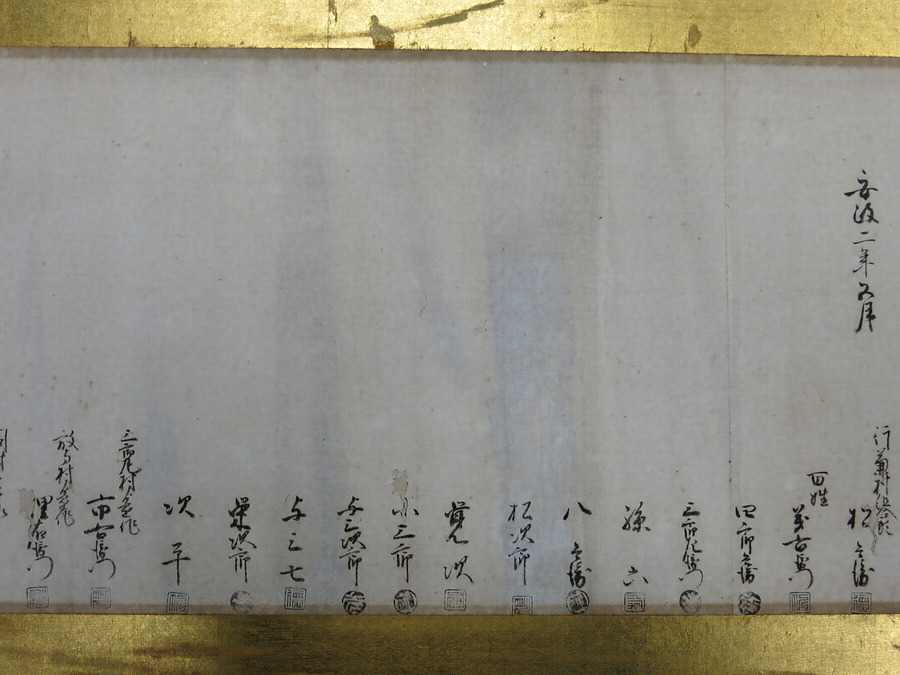 行兼村組合頭・松兵衛、同村百姓12名、周辺村々の懸作百姓6人の計19人が十村(大庄屋)宮丸村次郎四郎(現砺波市宮丸在住の十村・安藤氏)に宛てている。通常、この十村が藩の郡奉行に宛てた奥書やその上局の算用場奉行の裏書があるが本史料には無い。