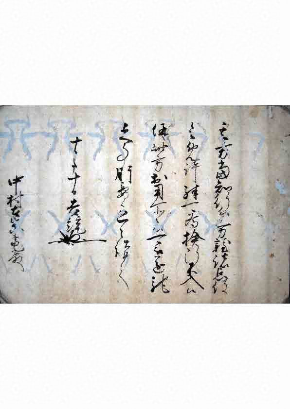 菊池氏系中村家の文書。大友吉統は中村左京亮(中村重周)に対して当知行の所領の「万雑諸点役」の免除と「検断不入」の特権を与えている。重周は大友吉統の朝鮮出兵に随行し、その後17歳で早世している。