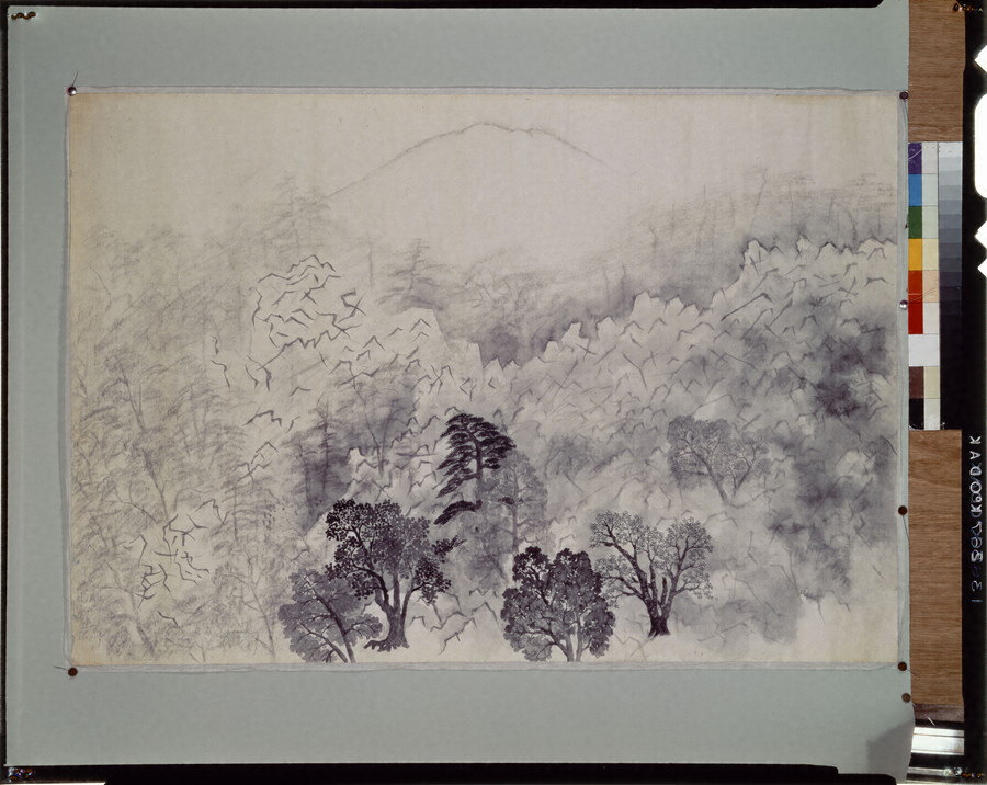 第31回院展出品作の未完品。本作は下絵を描かず常に本番として描いているため未完品が多数ある。大観の制作過程を知ることができる貴重な作品。