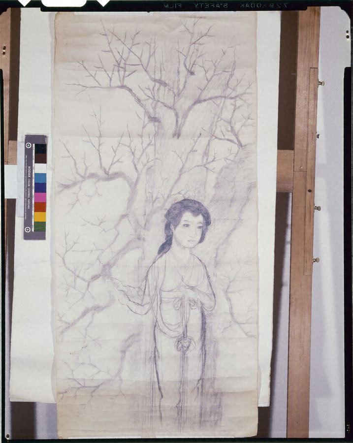 第六回院展出品作の習作。出品作は戦争で焼失しているが、大観はこの習作作品を蔵に保管していたため焼失を免れた。