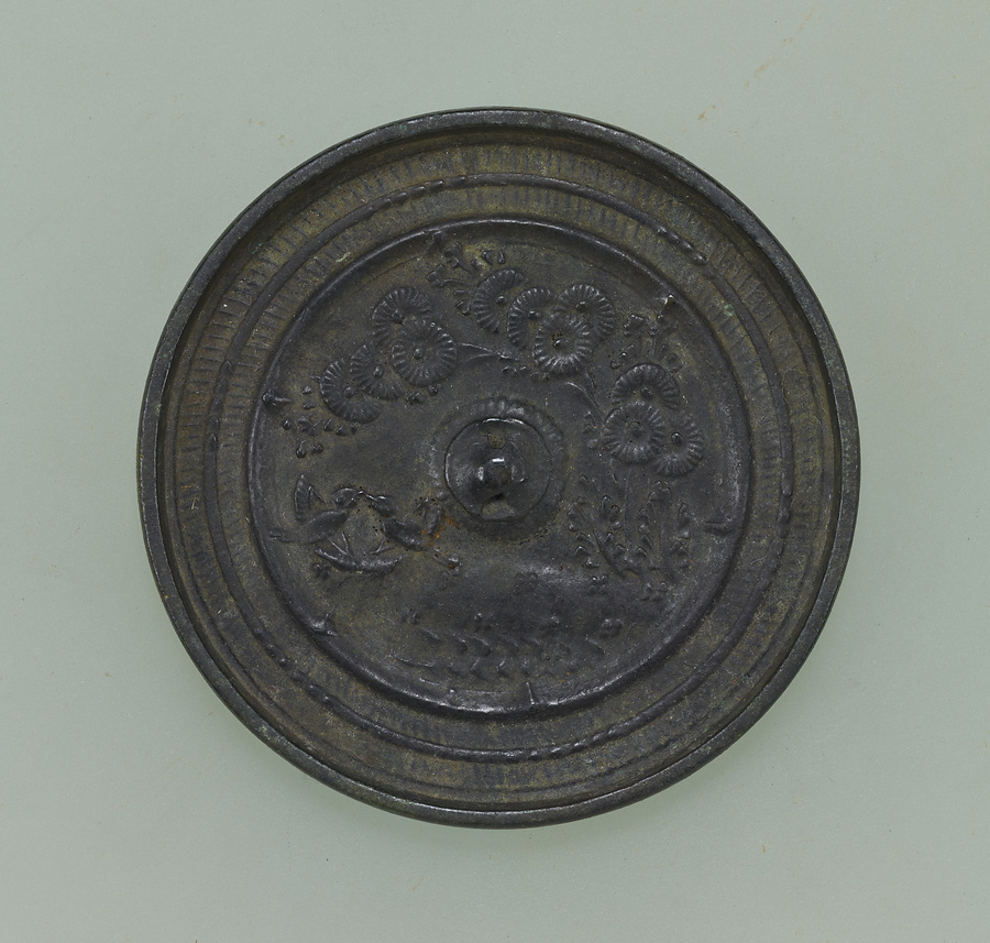 州浜菊花双鳥鏡