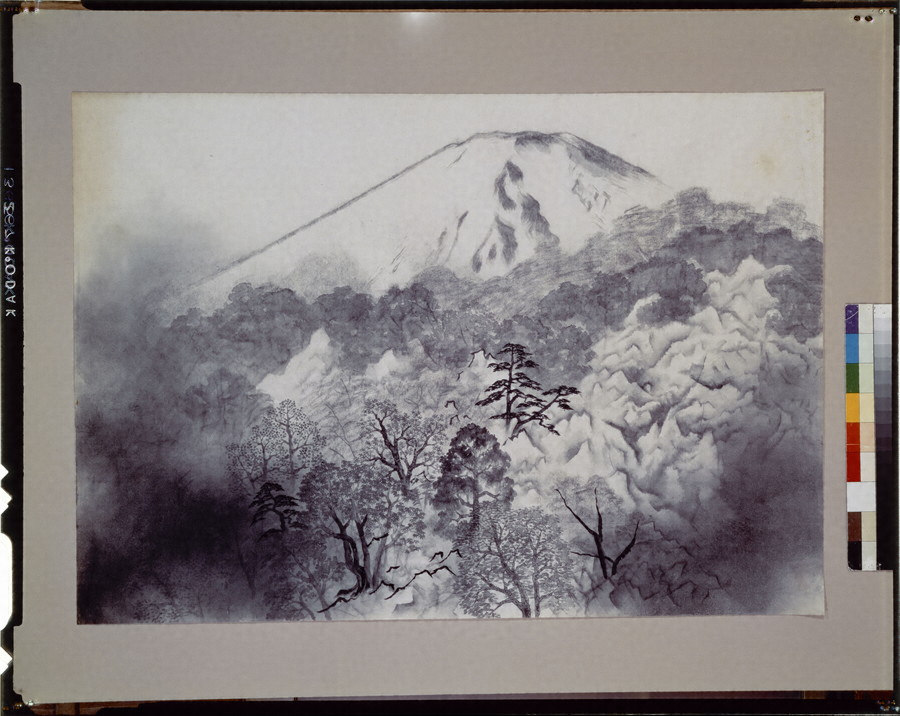 第31回院展出品作の未完品。本作は下絵を描かず常に本番として描いているため未完品が多数ある。大観の制作過程を知ることができる貴重な作品。