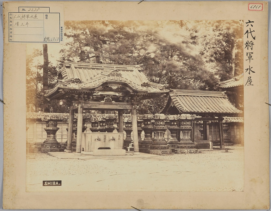 銘文:表:六代將軍水屋(墨)、六代將軍水屋 増上寺(東京帝室博物館ラベル)、SHIBA.(画面内)