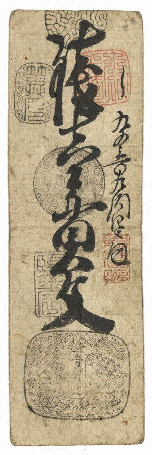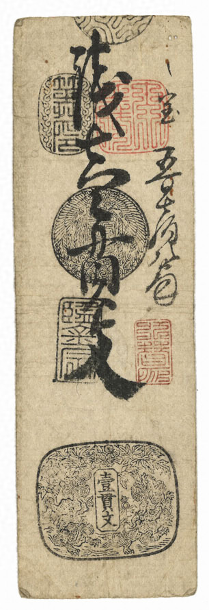 ①「銭十貫文」②「銭二百文」③④「銭一貫文」⑤「銭五百文」