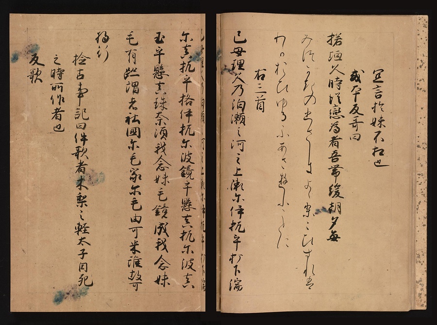 『万葉集』とは古代の和歌をあつめた日本最古の歌集であり、8世紀の後半頃にまとめられました。現在のこされている『万葉集』はいずれも平安時代以降に書き写されたもので、この元暦校本万葉集は元暦元年(1184)に校正作業が行われた写本です。