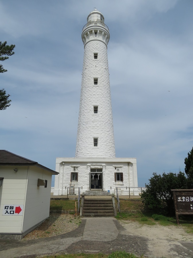 島根半島の西端、日御碕に位置する。明治後期になって灯台建設が進捗した日本海沿岸に、明治36年に建設された洋式灯台で、高さ44mと、当時最も高い塔高を誇った。ブラントンが考案した二重円筒(にじゅうえんとう)構造を外側は石造、内側はレンガ造に応用するなど、洋式灯台技術の定着をしめす。設計は石橋絢彦(いしばしあやひこ)(逓信省(ていしんしょう)航路標識管理所)で、日本人技師が手掛けた石造灯台の到達点として評価される。美保関灯台とあわせ、山陰地方の航路の安全・発展に寄与した。