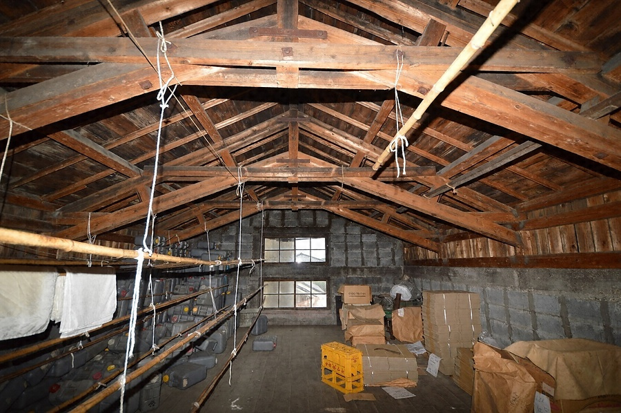 主屋北に位置する醸造工場。二階建切妻造L字棟の主体部の東北側に平屋建の増築部が取付く。主体部はコンクリートブロック造で西を諸味室、東を温醸室とし二階は二室の倉庫。小屋組は挟み梁の変形トラス。増築を重ねた複雑な外観が醸造業の興隆を伝える。