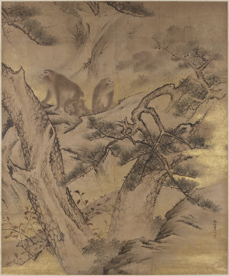 秋山遊猿図
