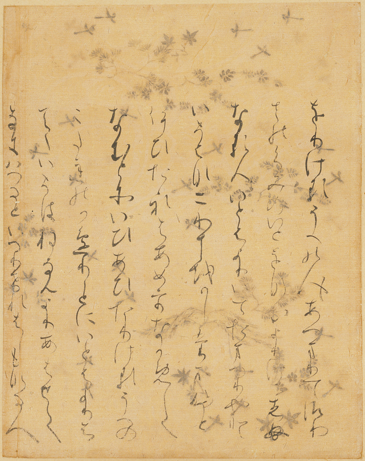「本願寺本三十六人家集」の「伊勢集」の断簡で、料紙と筆跡が織り成す美しさが見どころの遺品である。もとは、後奈良天皇より本願寺に下賜されたが、昭和のはじめに分割された。切名はもと本願寺が摂津・石山にあったことにちなんで、名付けられた。