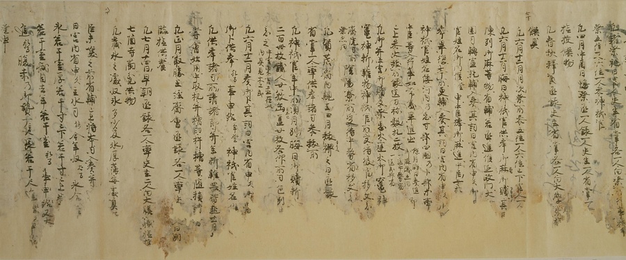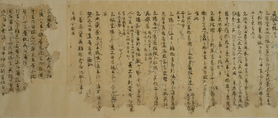 今回ご紹介する延喜式は、オリジナルを書き写した文章で、写本と呼ばれるものです。この写本は現存する中で最も古く、奈良・平安時代を通じて権力を握っていた藤原氏の一族である九条家に伝わりました。延喜式は全50巻で構成されていますが、そのうちの27巻が残っており、1巻を除くすべてが平安時代の後期に書き写されたものです。