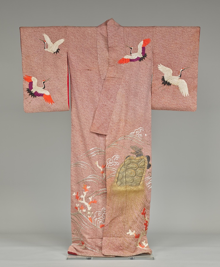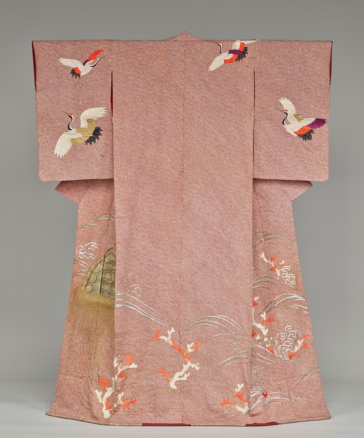 ほうもんぎ あかむらさきそうがのこしぼりりんずじつるかめなみさんごもよう