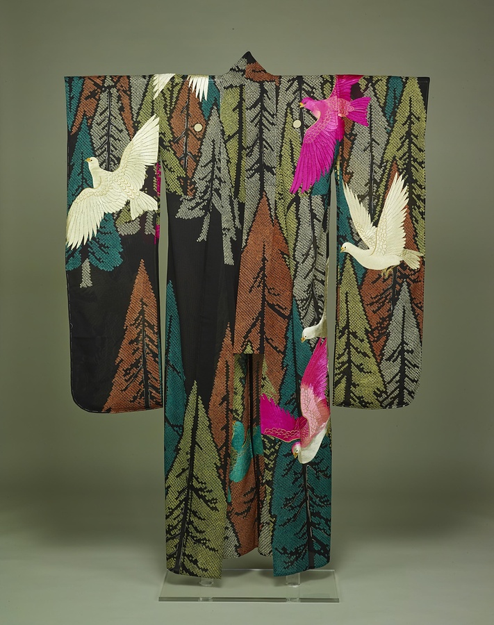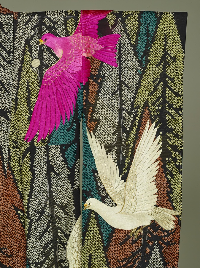 単衣振袖 黒絽地杉木立鳩模様をもっと見る