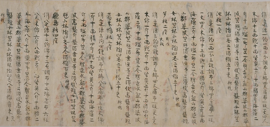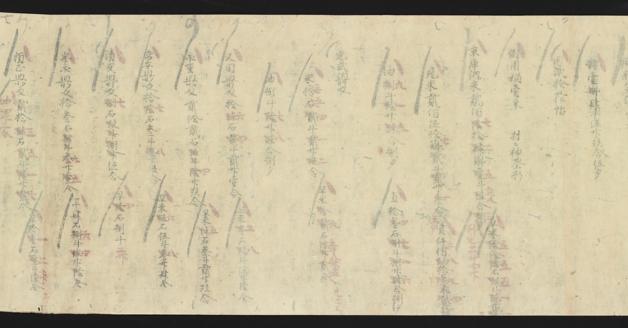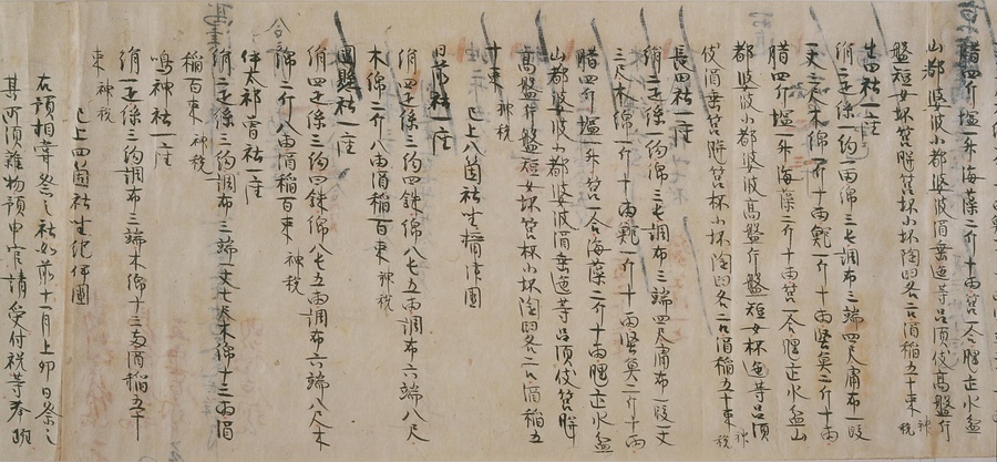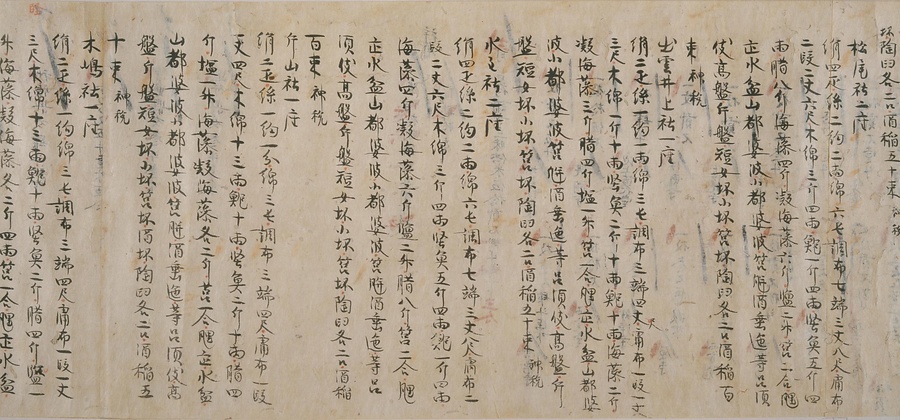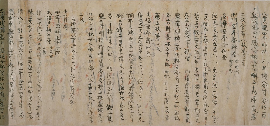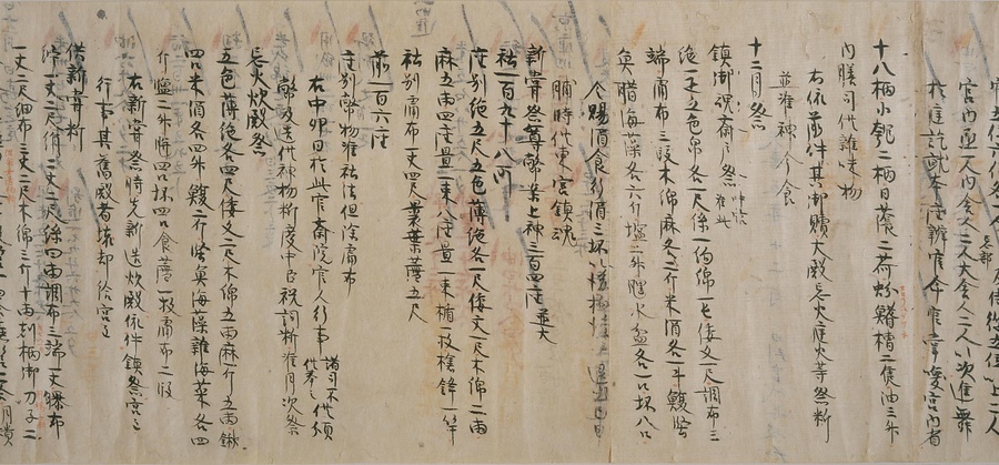 今回ご紹介する延喜式は、オリジナルを書き写した文章で、写本と呼ばれるものです。この写本は現存する中で最も古く、奈良・平安時代を通じて権力を握っていた藤原氏の一族である九条家に伝わりました。延喜式は全50巻で構成されていますが、そのうちの27巻が残っており、1巻を除くすべてが平安時代の後期に書き写されたものです。