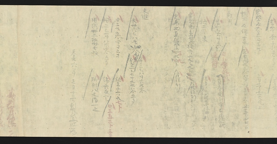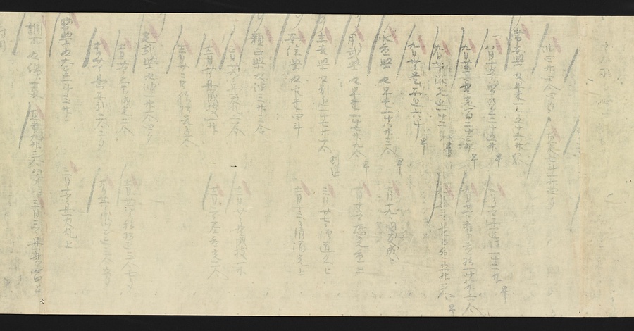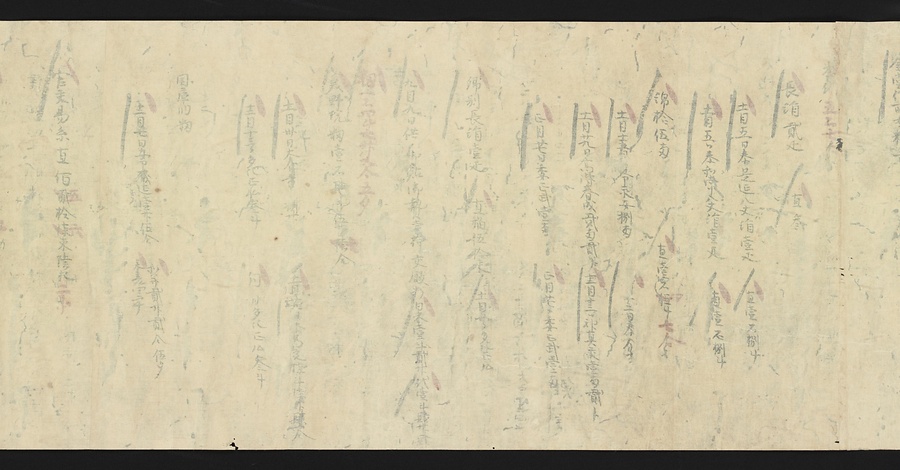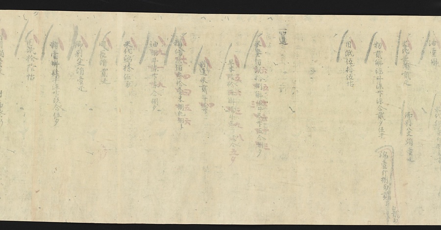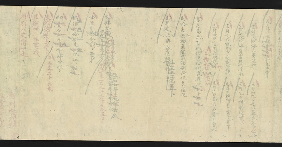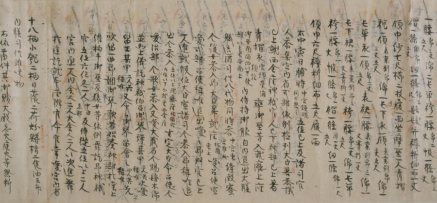 延喜式の内容のうち、半分近くが毎年特定の時期に行われる行事に関するものです。行事の時期や内容を把握しておくことは、宮中で働く役人にとって重要なことでした。この史料も行事を確認するために写されたと考えられます。九条家ではこの延喜式を代々の当主が手にしていたのでしょう。