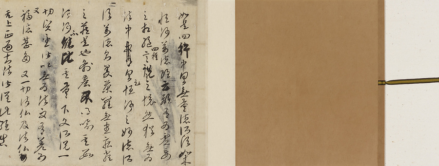 空海が『金剛般若経』の経題を解釈したもの。草書体のまま行書を交えた書体で書かれ、所々に抹消、修正、および追記などがあるところから草稿本と見なされる。草稿本であるためいかにも忽卒(こっそつ)に書かれてはいるが、それだけに空海のありのままの筆跡を伝えるものとして貴重なもの。奈良国立博物館などにも同種の残巻が保管されている。