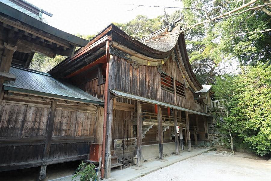 櫻井神社は玄界灘に突き出た糸島半島に位置する。古墳の上に覆屋を架け岩戸と称し、前方に本殿、拝殿、楼門を並べる独特の構成を持つ。創建から程なく整備された社頭(しゃとう)景観をほぼそのままに残す希少な神社遺構として価値が高い。寛永9年(1632)建立の本殿は三間社としては規模が大きく、組物や四手先の腰組などは江戸初期の整った意匠を持ち、組物や蟇股彫刻等を極彩色で豊かに飾る。拝殿も平面や開放的な建具の扱いに地域色をみせ、質実なつくりの楼門とともに、福岡藩直営にかかる質の高い社殿群として評価できる。