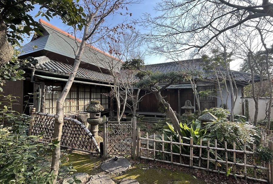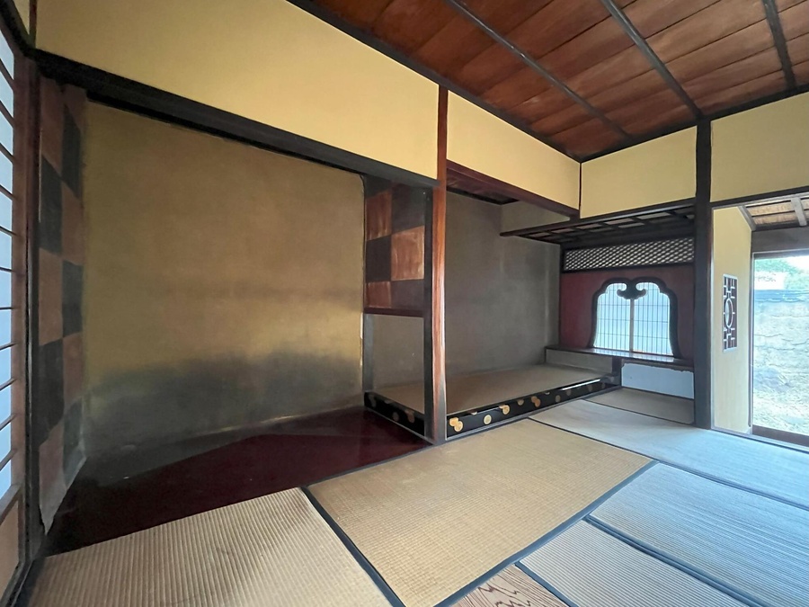 白山駅西方に位置する旧家の主屋。切妻造桟瓦葺南北棟の北に入母屋造茅葺(銅板仮葺)の東西棟を接続し全体T字形平面とする。南は玄関と茶室、北西に続き座敷、北東に台所を配す。座敷は漆塗床框に菊花紋を付し、付書院の蕨火頭窓など華やかな数寄屋風意匠。