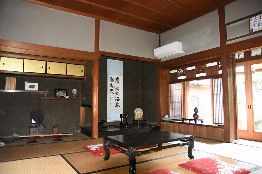 宇陀松山旧城下町でかつて醤油醸造を営んだ商家の主屋。切妻造平入桟瓦葺で整形六間取、北端土間部は屋根を一段下げ煙出を設ける。正面は格子と黒漆喰の虫籠窓とし出桁で軒を深く出す。二階は船底天井の六室を配す。通りに面し、歴史的な景観を形成する町家。