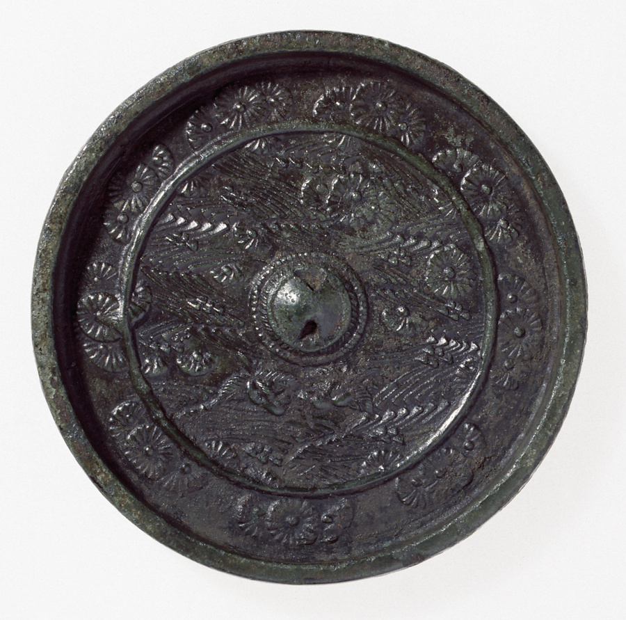 桜花山吹双鳥鏡(線刻男神鏡像)
