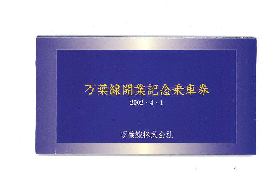 加越能鉄道により半世紀余りにわたり運行されてきた万葉線が2002年4月より、第三セクター、万葉線株式会社として営業を開始した際の記念の乗車券。