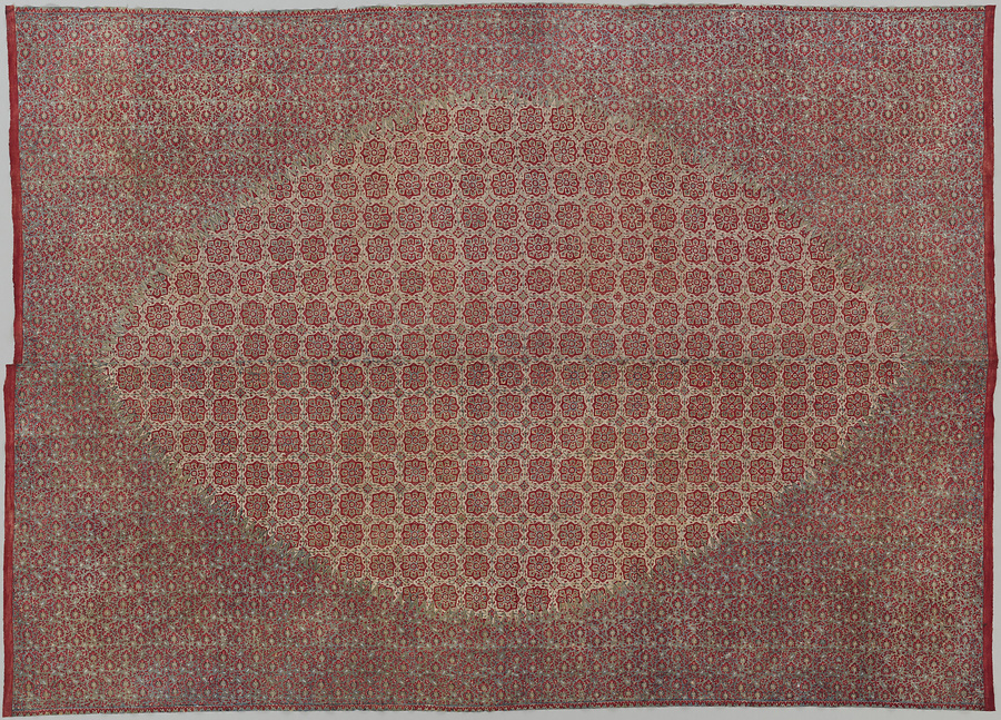 茜地花葉文様更紗装飾布