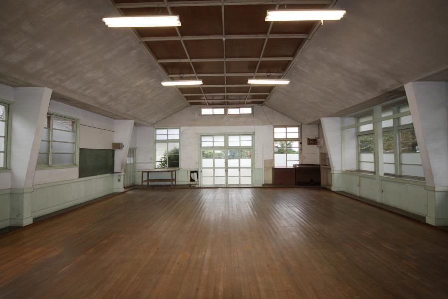 二号棟の北西方に渡廊下を延ばして接続する。木造平屋建、切妻造妻入で、外壁は軒裏までモルタル塗とし、ガラス窓を多用し採光を確保する。内部は一つの大空間で、天井を中央に向けて切上げて高くし、屋内運動場としても利用できるように工夫されている。