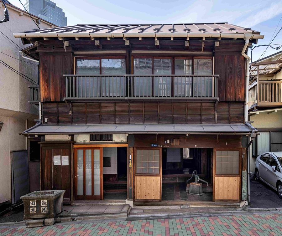 佃島の中通りに東面して建つ、旧魚問屋兼仲買を営んだ店舗兼主屋。2階建切妻造平入鉄板葺で軒は出桁造で外壁簓子下見板張。店舗は人研仕上の土間床に井戸と生簀を残し、奥と二階に数寄屋風の座敷を構える。震災と戦災を免れ漁師町の風情を伝える貴重な町家。