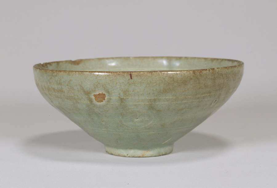 青磁象嵌雲鶴石榴文碗