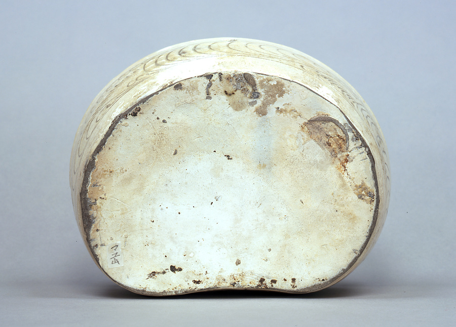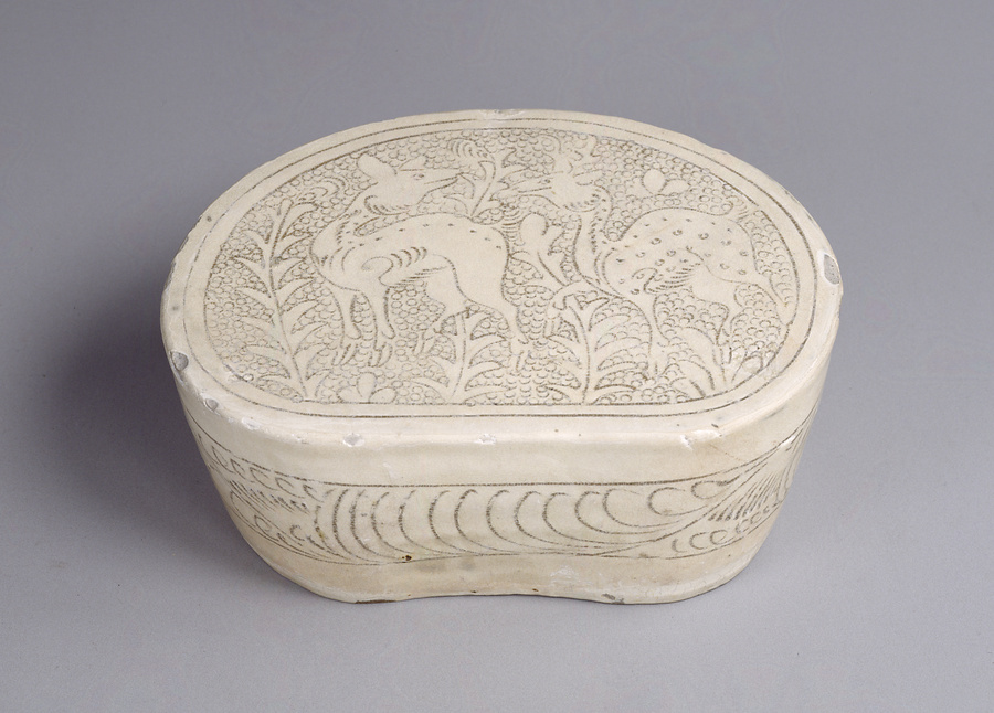 白釉刻花双鹿文枕