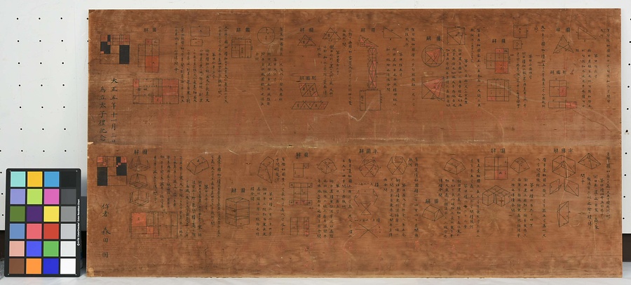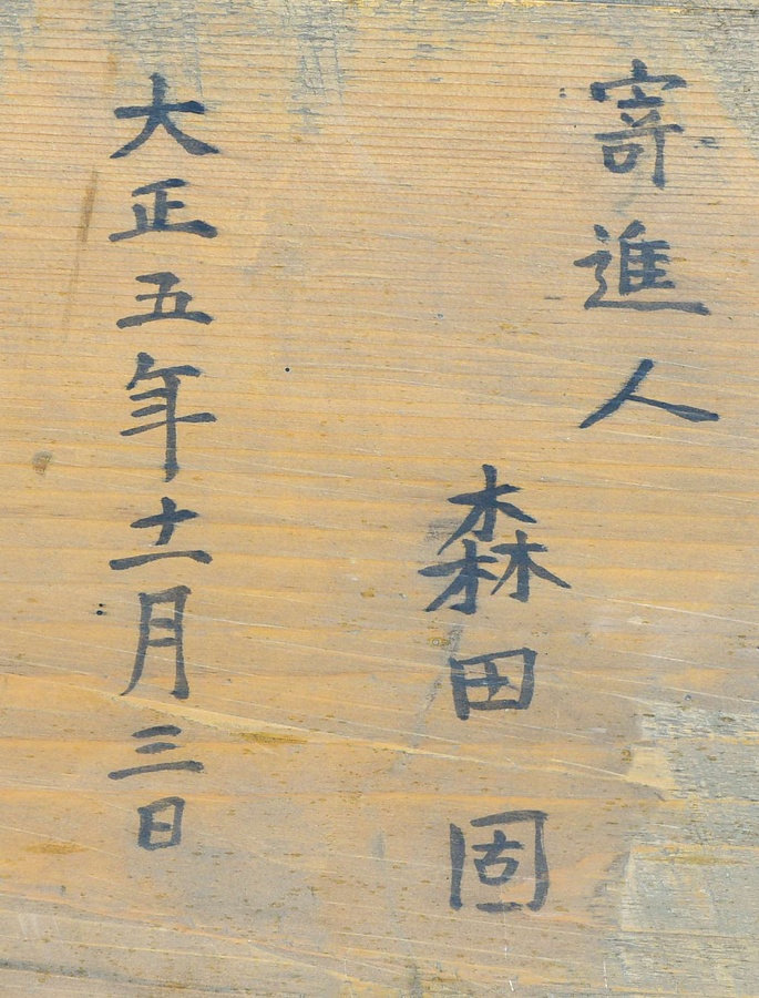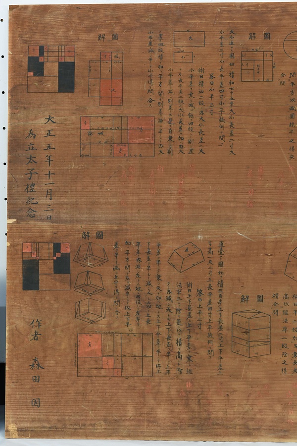 現富山県高岡市今泉の大工・森田 固が作成し、立太子記念の日に戸出野神社に奉納した算額。のち東砺波郡般若野尋常小学校(現高岡市立中田小学校)に掲示されていた。