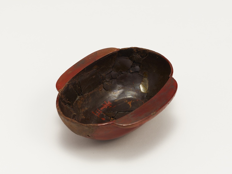 耳杯は羹や酒を盛る容器として戦国時代(紀元前5~前3世紀)に登場し、秦漢時代(前3~2世紀)に盛んに作られ、魏晋南北朝時代(3~6世紀)まで使われた。本作の「利王」と読める銘は、楽浪遺跡群の王盱墓、王光墓などから出土した漆器に多数の該当例がある。
