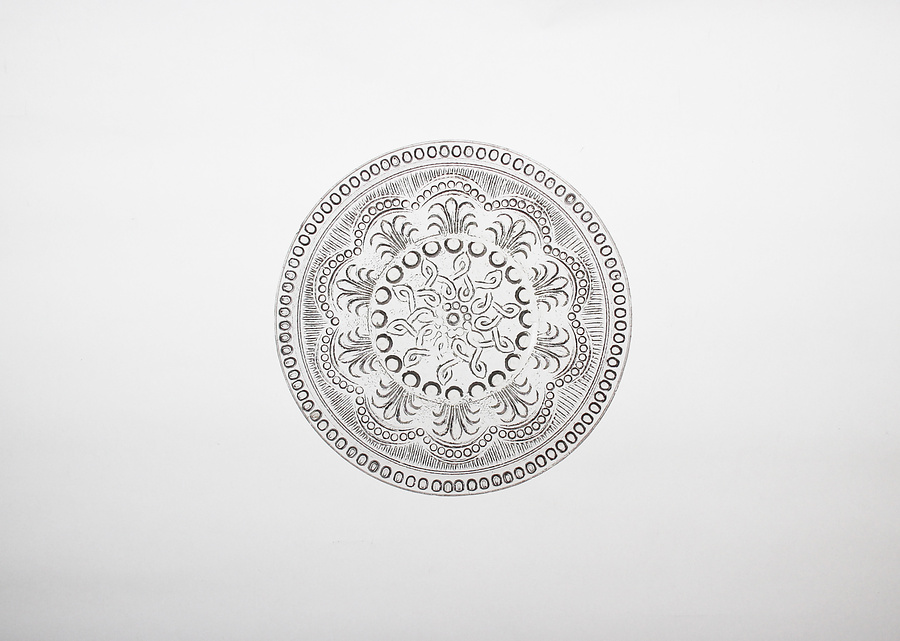 プレス十一曜8字繋ぎ菖蒲文ガラス皿