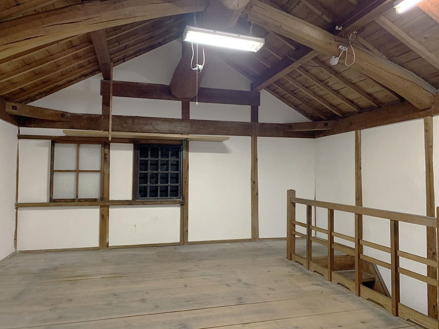 主屋北西に位置する家財蔵。2階建切妻造妻入桟瓦葺で外壁漆喰塗仕上で、軒に鉢巻を廻らし、腰に高く竪板を張る。南に戸口、北妻と東面に塗込の庇付き窓を開ける。内部は各階板敷の一室で小屋組は登梁形式の和小屋。小規模ながら用水路沿いの点景となる土蔵。